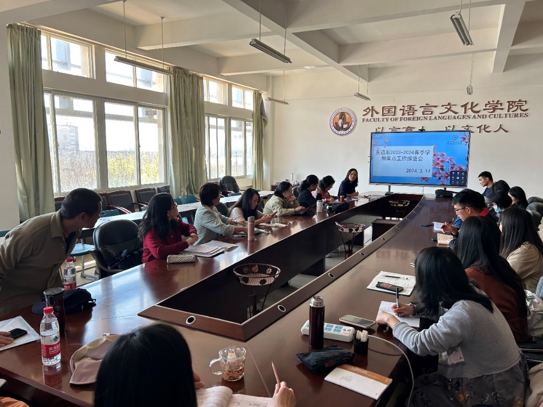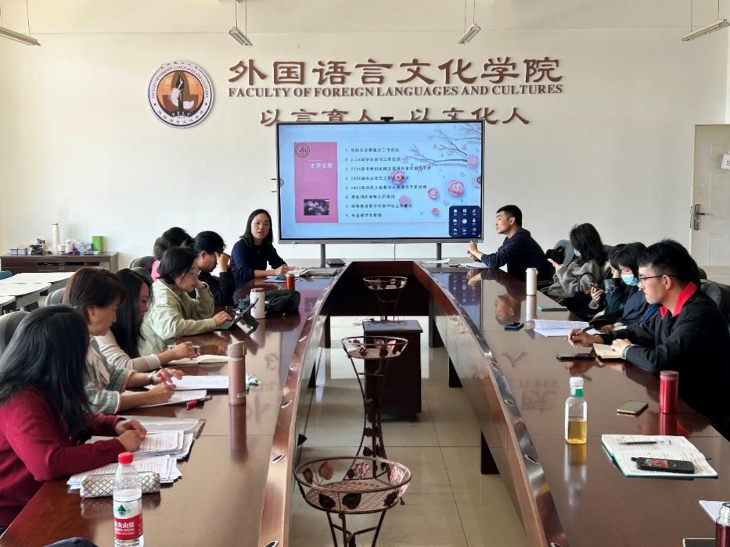 马倩传达了学院本学期重点工作,包括本科教育教学审核评估、建校70周年创新发展大会系列活动以及落实学校对学院三年行动计划考核指标相关工作。2024届毕业实习各组带队教师简要汇报了学生的实习工作进展,分享了与实习单位沟通交流和对学生实习过程性监督的经验。会议通报了2024届考研初试上线情况,动员具有相关专业背景的教师积极参与学生的复试指导工作;确定了2024年校级本科课程教学团队建设申报的相关工作安排。参会教师针对在2024届毕业论文辅导、2023版培养方案教学大纲撰写和专业课学生管理中遇到的问题进行了集体讨论和分析。马倩强调英语系全体教师在完成日常教学工作的同时,应结合学院在省级人才、省级思政课程、省级研究生导师、咨政报告等方面的目标任务要求,认真履行教学科研职责,为学院的发展作出应有的贡献。