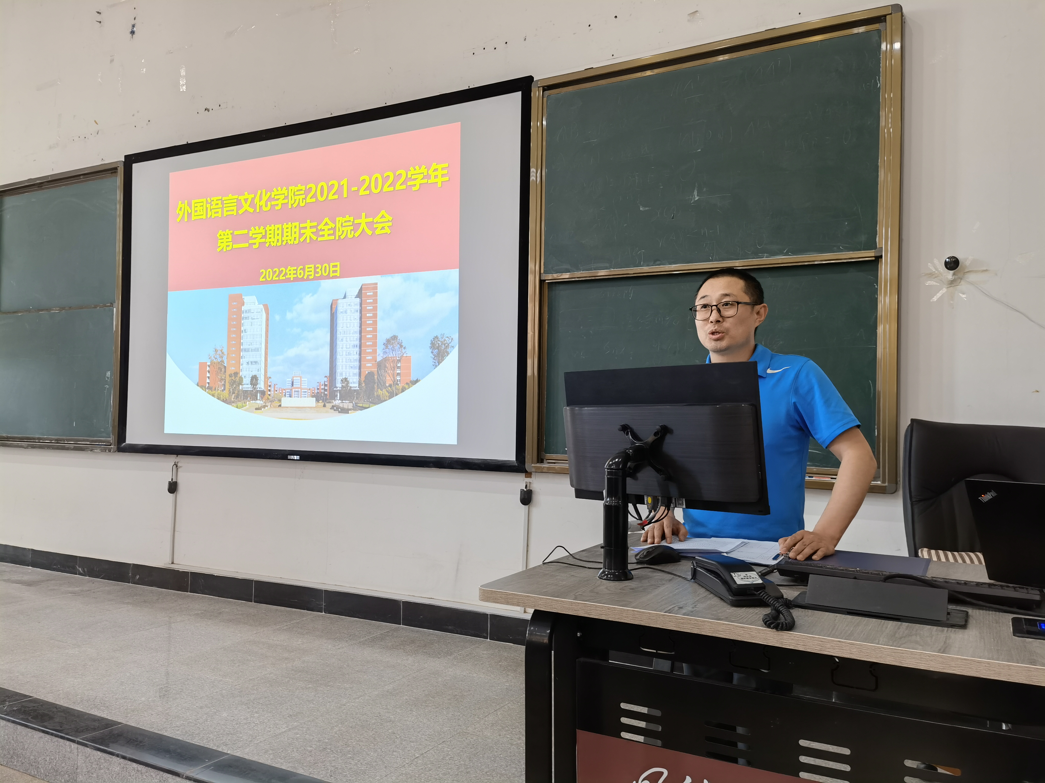 会上,王英院长安排部署了假期相关工作。她首先强调了学院的安全维稳工作,要求各分管领导和部门要做好暑期本部门职责范围内的安全维稳工作,主要包括做好暑假期间留校学生和军训学生的安全工作,落实好教职工暑期外出的请假报备、疫情防控、安全出行和按时返昆等管理规定,做好语音实验室和办公室的防火防盗防漏电等安全工作;在确保安全的前提下做好博文楼语音室腾退工作、办公室的调整搬迁工作等,确保下学期开学各项工作的正常运转;其次,王英院长要求各分管领导和部门要落实好暑期学院各项中心工作的持续推进,包括学生就业、翻译硕士专业学位点数据的更新和上传、本科生招生、课程质量档次评价、教师参加教学能力和学术能力提升培训、学校“明德学者”部分岗位竞聘及培育项目专项材料的评审和上报等工作。