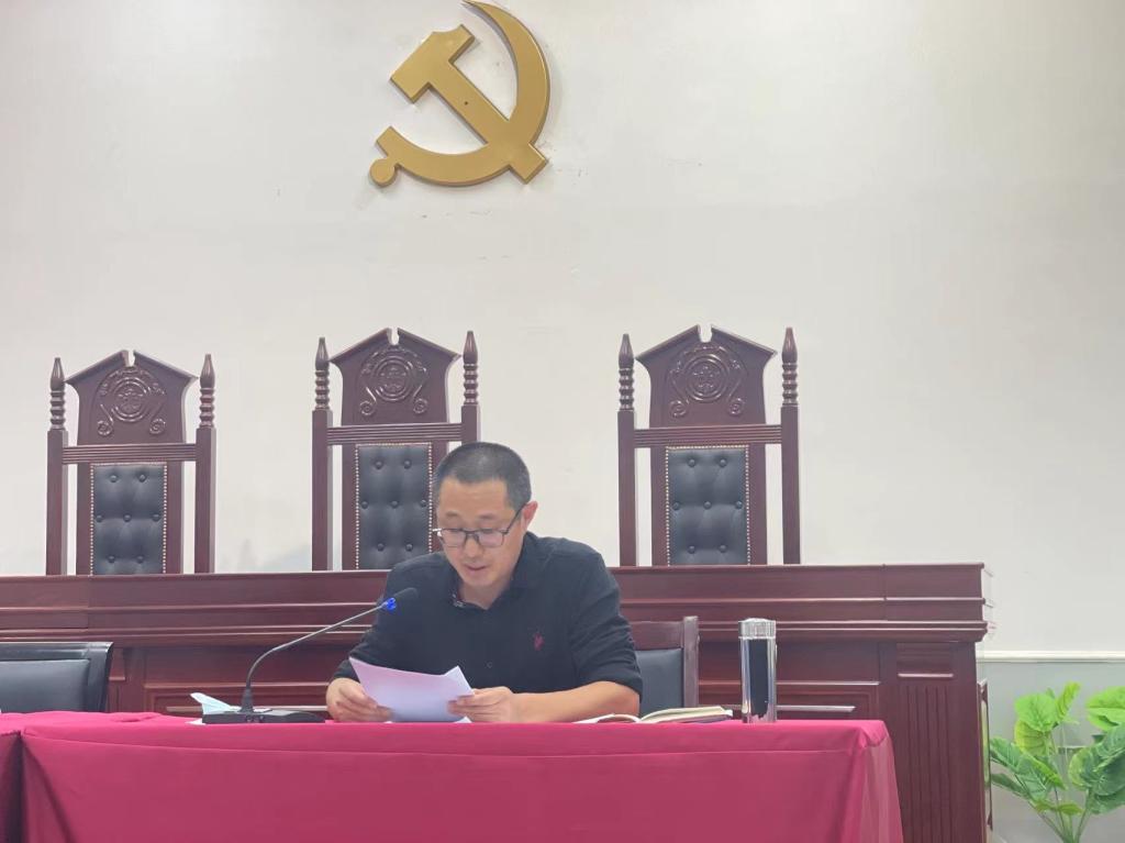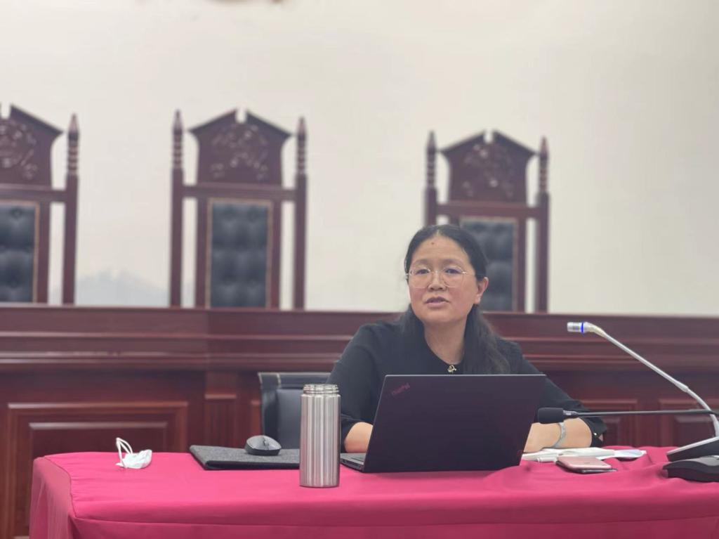 在明理楼模拟法庭召开新学期全院教职工大会,会议由王英院长主持,全院教职工参加会议。