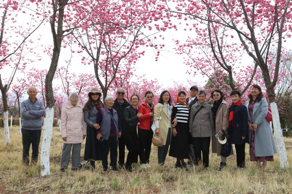 座谈会后,退休教师们参观了呈贡校区,感受春意盎然时节的校园风光。十余位老教师携手同行谈笑风生,每个人的脸上都洋溢着幸福的笑容。