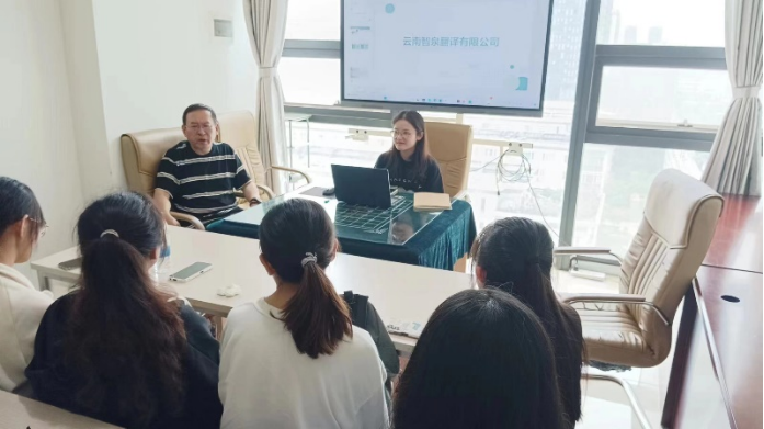 学院一行受到云南智泉翻译公司总经理解蒙热情接待。解蒙经理与到访师生展开座谈,对公司的发展历程、公司架构、人才需求进行了介绍,并针对翻译行业的机遇与挑战、翻译人才的技术素养等作了详细介绍。公司项目经理郑丽丹老师介绍了翻译项目管理的基本流程,并通过现场实操让学生们直观地了解了翻译软件的使用以及专业翻译中团队协作的效率与重要性。