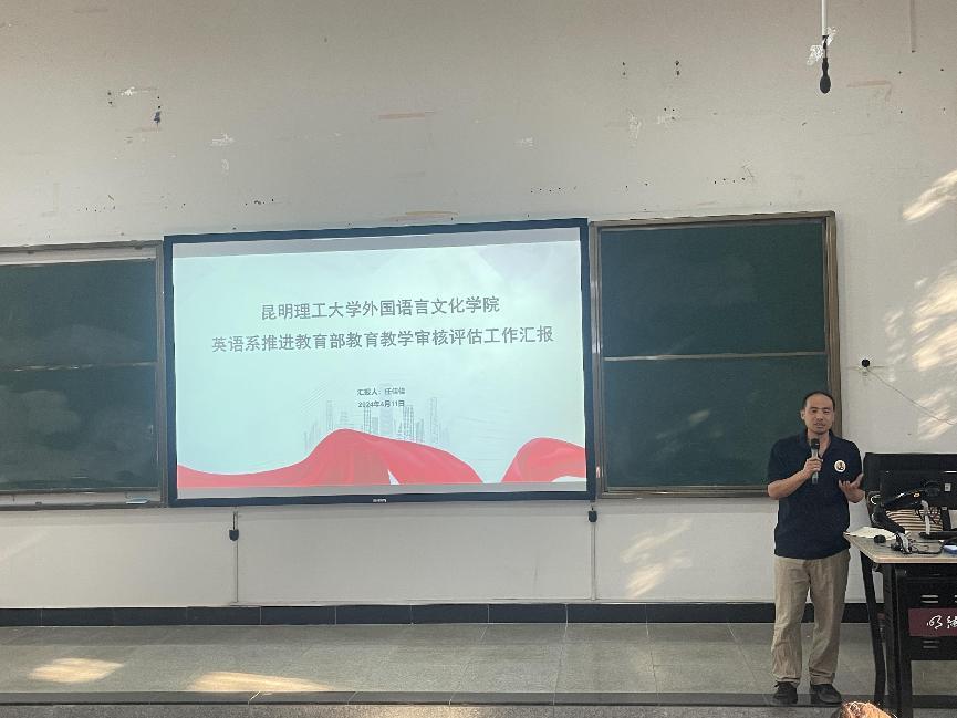 大学英语第二教研部系主任汇报了大学英语教研部及欧亚语教研部“迎评促建”工作开展以来采取的措施、阶段性成果及未来开展工作详细计划。英语系系主任从实地调研、工作动员、资料准备、人才培养和教师培训与职业发展五个方面详细陈述英语系在推进教育教学审核评估工作中所承担的责任及做出的努力。学院全体教职工以“迎战”“奋战”的决心和姿态高度重视评估评建工作,有信心也有能力把此项工作做细做好。