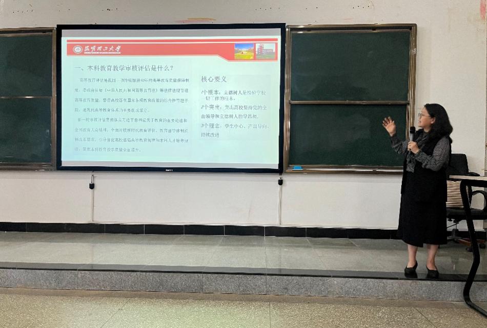 王英强调,审核评估是本学期学院各项工作的重中之重,全体学生要深入理解“1个核心”“2个突出”“3个理念”的深刻内涵,在学校学院全面提升本科生人才培养质量的大背景下,不断加强班风、学风建设,提高自身专业能力和综合素养。王英鼓励学生们保持良好的精神风貌和积极的学习态度,以高度的主人翁意识和责任感,积极参与到学校迎接审核评估的各项活动中,以饱满的热情迎接我校本科教育教学审核评估工作。