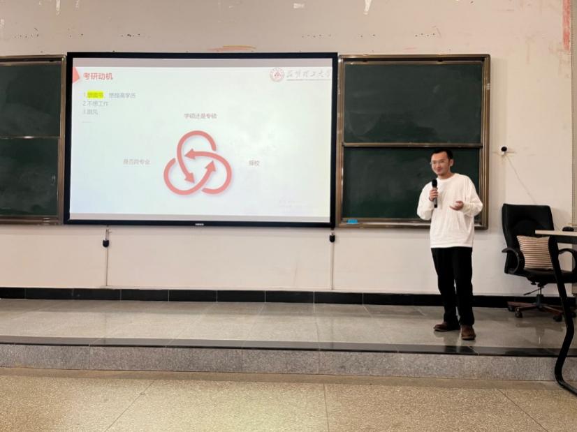 随后,学院邀请2024年考研成绩优异的宋恩希、张子然、俞博三位应届毕业生,做本科学生“朋辈助学”考研经验分享交流。三位同学分享了自己备考过程中院校专业选择、公共课、专业课复习备考方法技巧,同时还详细解答了同学们提出的系列问题。