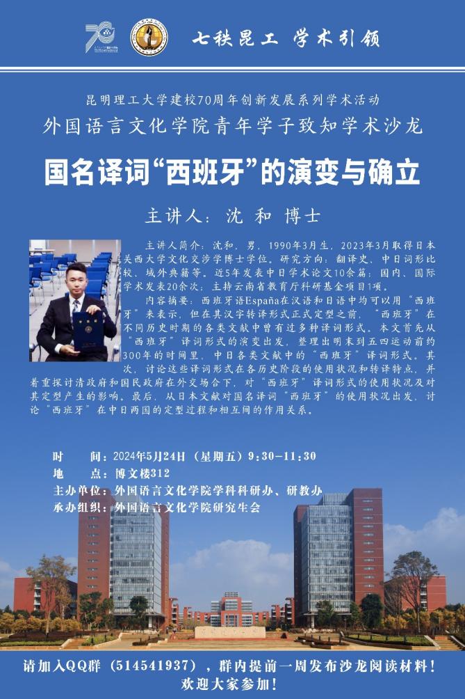 在博文楼312会议室开展了第四期2024年青年学子致知学术沙龙活动。此次沙龙以“国名译词‘西班牙’的演变与确立”为主题,特邀中文av