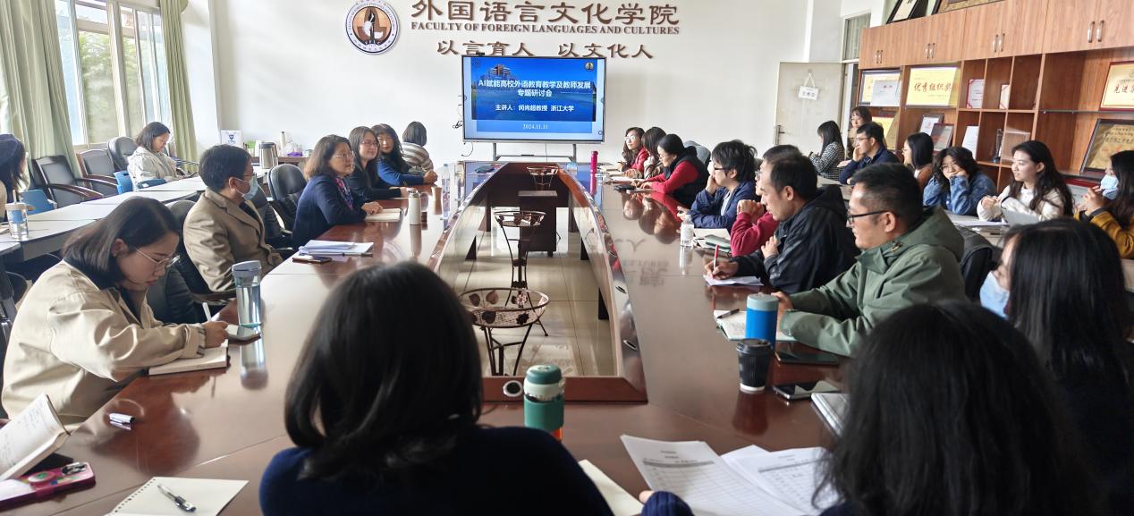 教师踊跃发言、积极交流,共同探讨了生成式AI技术在高校外语教学中的应用前景和实践挑战,深化了学院教师对AI技术在外语教学中作用的理解,也为中文av