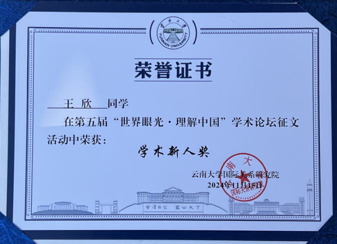 2023级研究生王欣此前投稿论坛征文活动获“学术新人奖”,受邀参与了论坛当天的现场学术交流和颁奖仪式。
