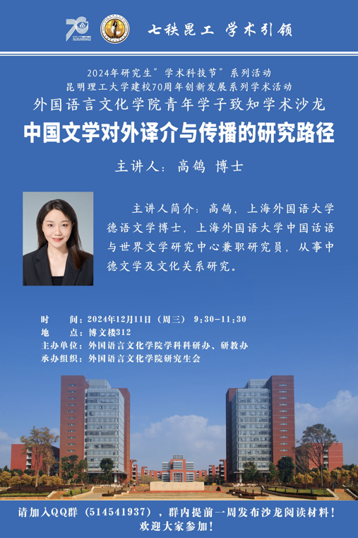 在博文楼312会议室开展了2024年第十期青年学子致知学术沙龙活动。此次沙龙以“中国文学对外译介与传播的研究路径”为主题,是中文av