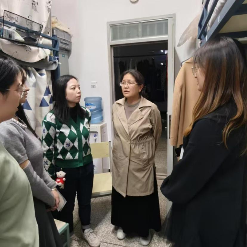 走访过程中,王英与研究生们亲切交流,细致询问了同学们的日常学习安排、生活适应情况以及未来发展规划。她强调,研究生阶段是学术能力提升和综合素质培养的关键时期,希望大家在专注科研的同时,也要注重身心健康,合理规划时间,做到学习与生活平衡发展。