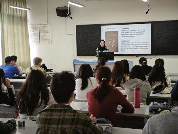 全体师生共同观看了《总体国家安全观·创新引领十周年》宣传视频,以及昆明广播电视台特别制作的《十年坚守,初心磐石——昆明践行总体国家安全观纪实》专题片。马超然讲解了“全民国家安全教育日”的背景与重要意义,强调外语类学生更要增强全民国家安全意识,筑牢国家安全防线,牢牢树立 “国家安全无小事”的理念,在学术研究、涉外交流、网络信息传播等领域严守底线,维护国家利益。研究生代表交流了学习《中华人民共和国国家安全法》和《中华人民共和国反间谍法》的收获,讨论并针对学术研究、涉外活动等场景中的潜在风险提出防范建议。