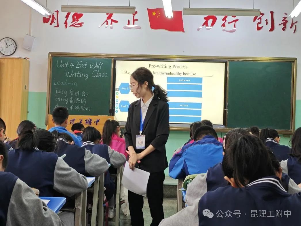 的10名英语实习教师。为助力实习教师专业成长,我校结合“师徒结对”的传帮带机制,遴选出10名优秀英语教师,充分发挥指导教师的示范引领作用;同时精心搭建教学实践平台。举办实习教师汇报展示课,以此锤炼打磨实习教师教学能力,为他们的职业发展注入强劲动力,铺就从教学新手到专业教师的成长之路。