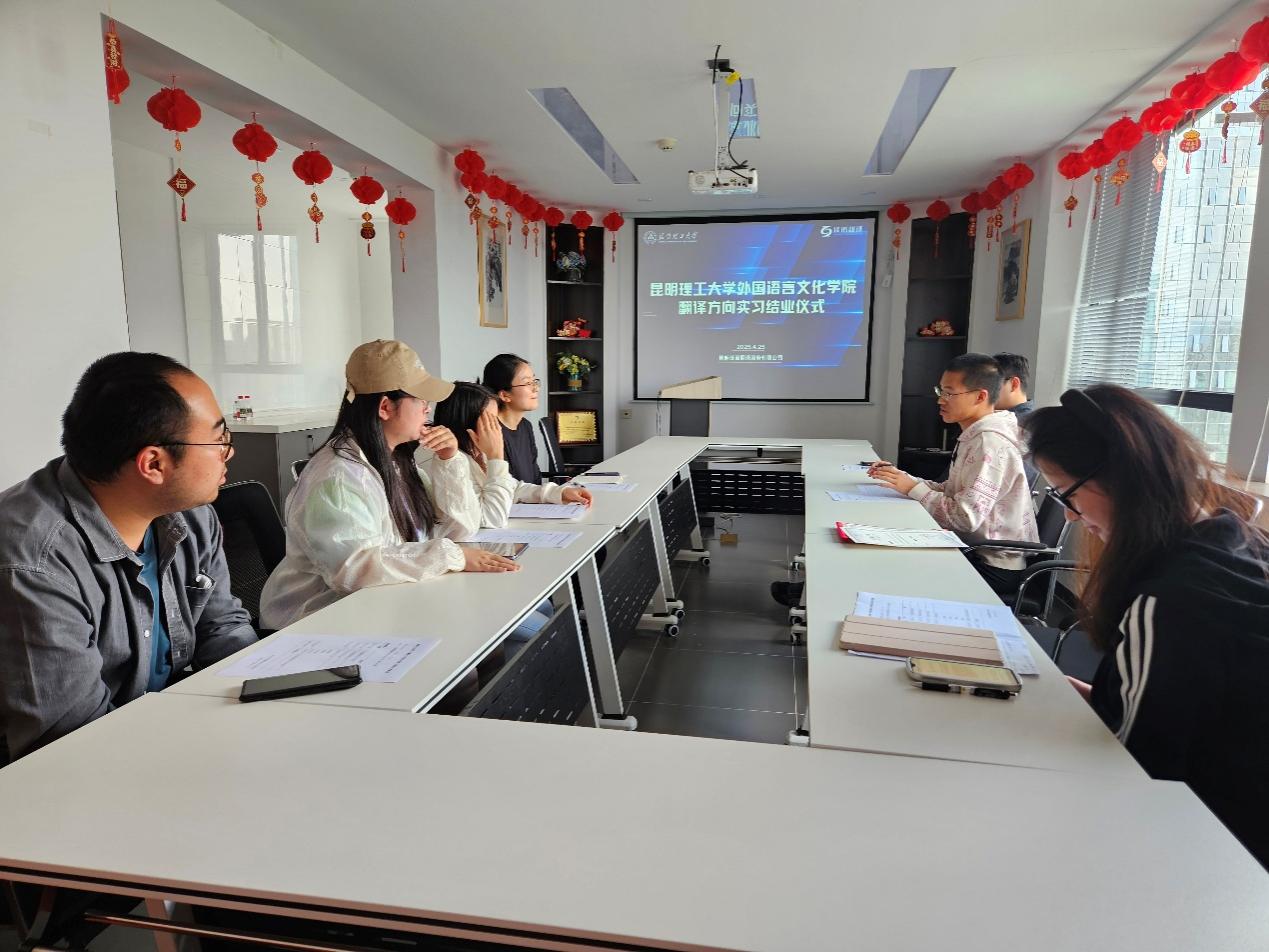 2025届翻译专业毕业生集中实习结业仪式在昆明译诺翻译服务有限公司举行。实习带队教师茶秋思、译诺公司管理层代表、企业导师团队以及全体实习学生参加了活动。