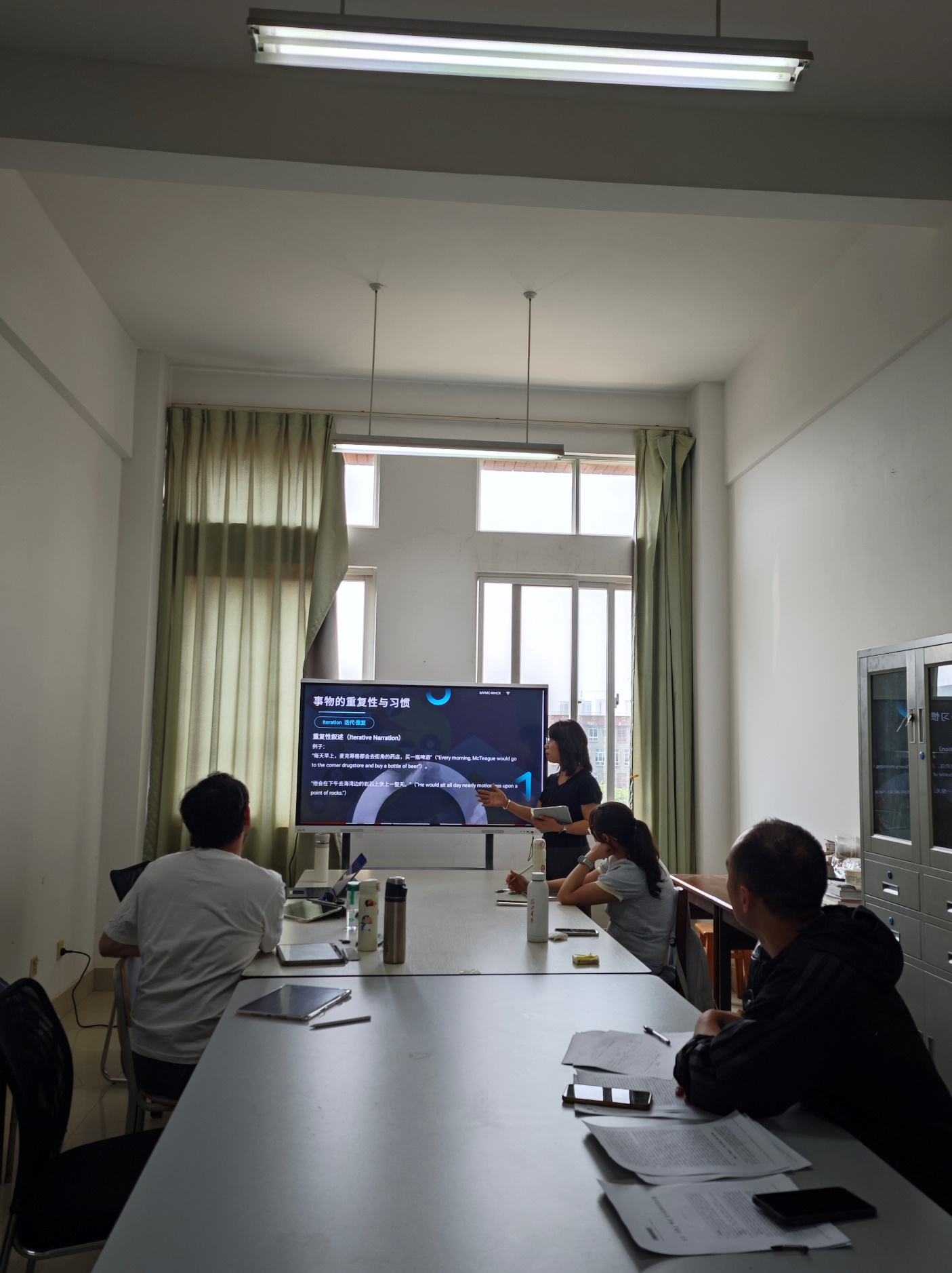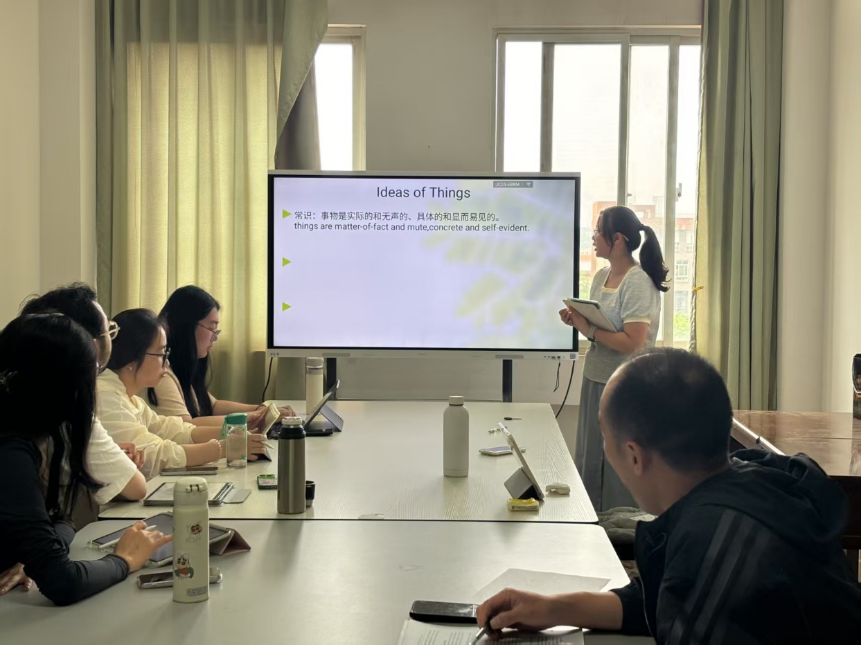 文学专题读书会由2024级外国语言文学专业硕士研究生彭悦和依应叫仑主讲,我院任佳佳博士担任嘉宾。彭悦基于比尔·布朗著作《物感》(A Sense of Things)第一章内容,深入剖析了“物”在不同语境中的深层含义;依应叫仑则聚焦该书第二章,系统阐释了物的重复性与人类习惯的互动关系。在讨论环节,主讲人与参会学生一起探讨了文学作品中“物”的独特叙事功能,并推荐了相关研究论文。最后,任佳佳强调了物叙事的理论价值,鼓励研究生们积极参加学术会议,拓宽研究视野。