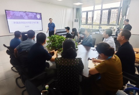 我校参会教师与教指委专家进行了交流,就我校MTI学位点的建设发展向专家征询建议,随后前往山东大学外国语学院调研学习,了解山东大学公共外语教学改革的创新举措,考察了其新文科实验室和口译实训室建设和使用情况。