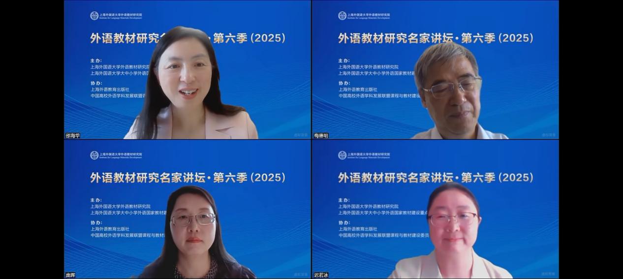 大学英语第一教研部于5月30日下午,组织全系33名教师齐聚云端,全程参加了由上海外国语大学外语教材研究院主办的“外语教材研究名家讲坛·第六季”线上讲座。