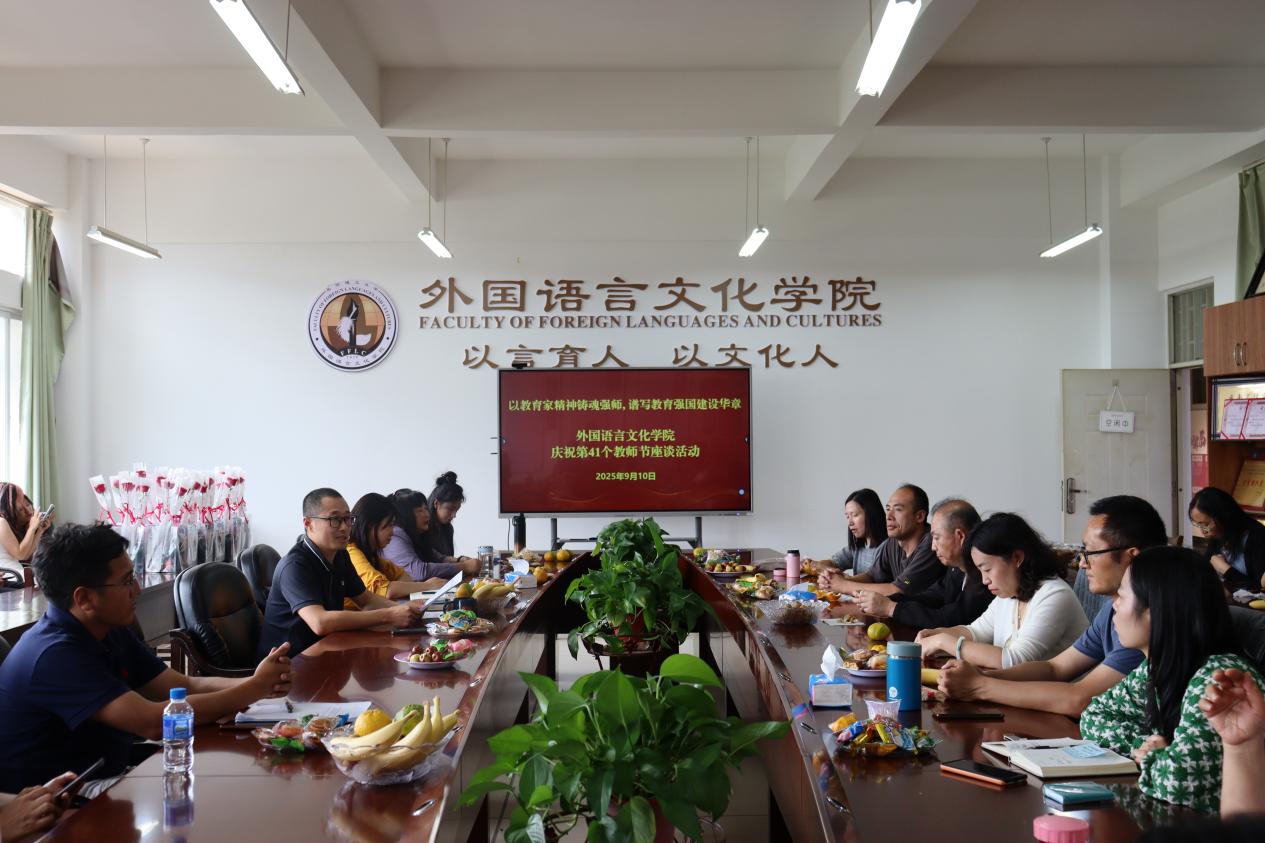 于博文楼312会议室举办“以教育家精神铸魂强基,谱写教育强国建设华章”教师节主题座谈会。学院领导刘建平、孙冠华、杨玲、李泽生出席活动,20余名教师代表参会。
