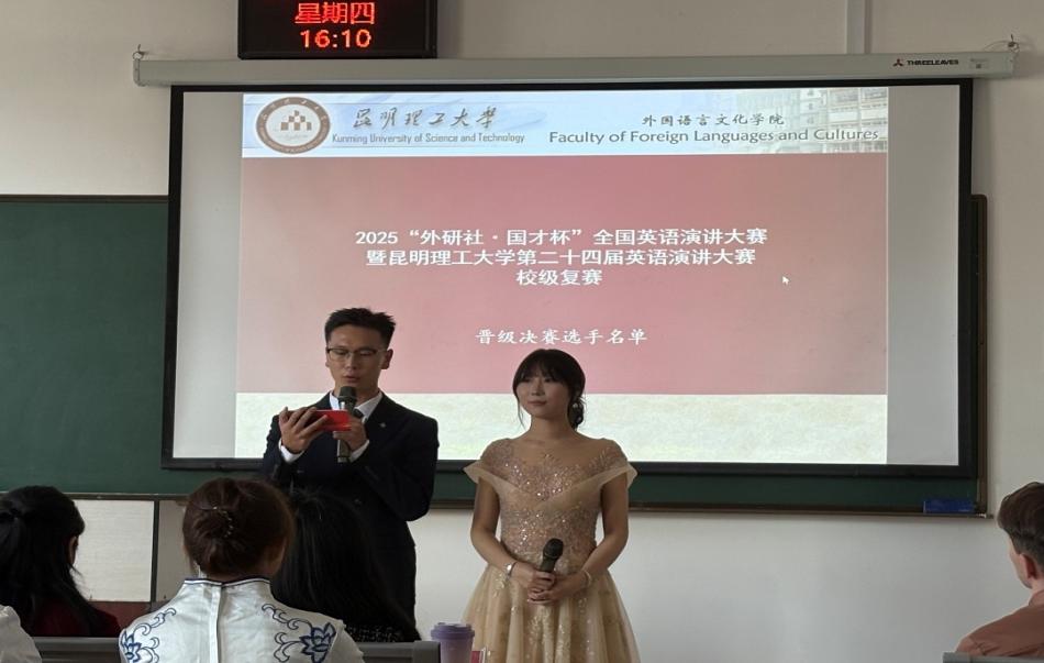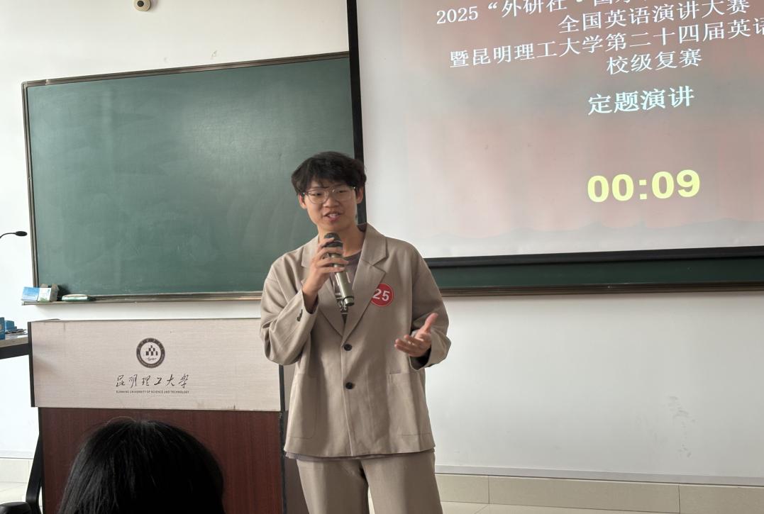 演讲比赛复赛是对选手的英语综合运用能力、知识广度及心理素质提出了更高要求。比赛现场气氛紧张而热烈,选手们或从全球科技竞争切入,阐述当代青年应如何“击水”中流,勇立潮头;或结合文化传播的实例,论证如何用语言的“浪花”打破隔阂,连接世界。选手们逻辑缜密、语言表达规范、台风自信沉稳,充分展现了昆工学子的卓越风采,赢得了评委们的认可。