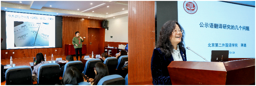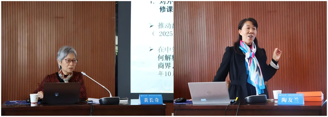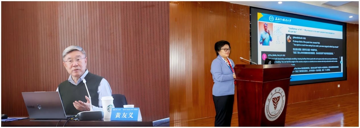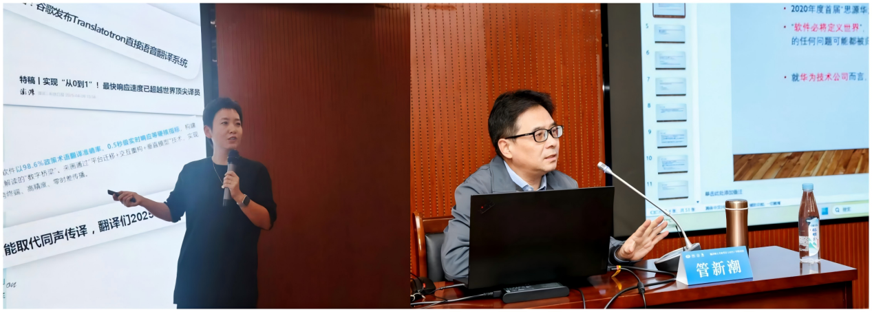 陶友兰、广东外语外贸大学高级翻译学院王巍巍、上海交通大学外国语学院管新潮分别围绕“从‘翻译世界’到‘翻译中国’——培养融通中外的高端翻译人才”“新时代背景下的MTI教育——理念与路径”“以AI助力翻译实践,迎接翻译的高端时代”“MTI毕业设计探索——翻译报告撰写与案例分析”“AI时代的口译教学与测评”“AI赋能翻译技术教学实践”等主题开展专题授课。