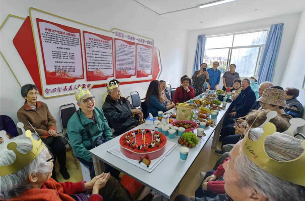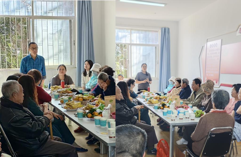 交流分享环节氛围热烈,退休教师们对学院连续多年在重阳节开展座谈活动表示感谢,并互相分享了退休后的生活——从书法绘画的雅趣到健身养生的日常以及长寿小秘诀。期间,学院工会特别为今年90岁、80岁的退休教师送上定制蛋糕,并为老教师们过集体生日。