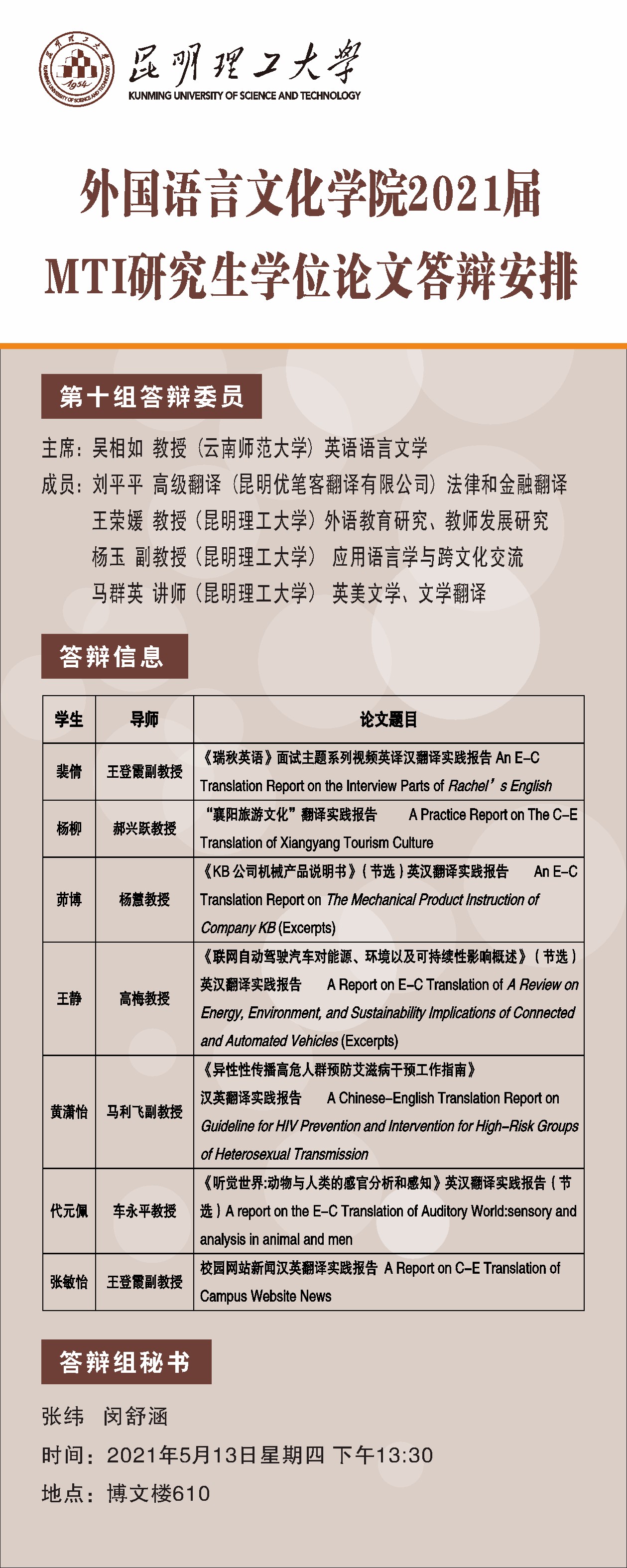 中文av 2021届MTI研究生学位论文答辩公示(第十组)