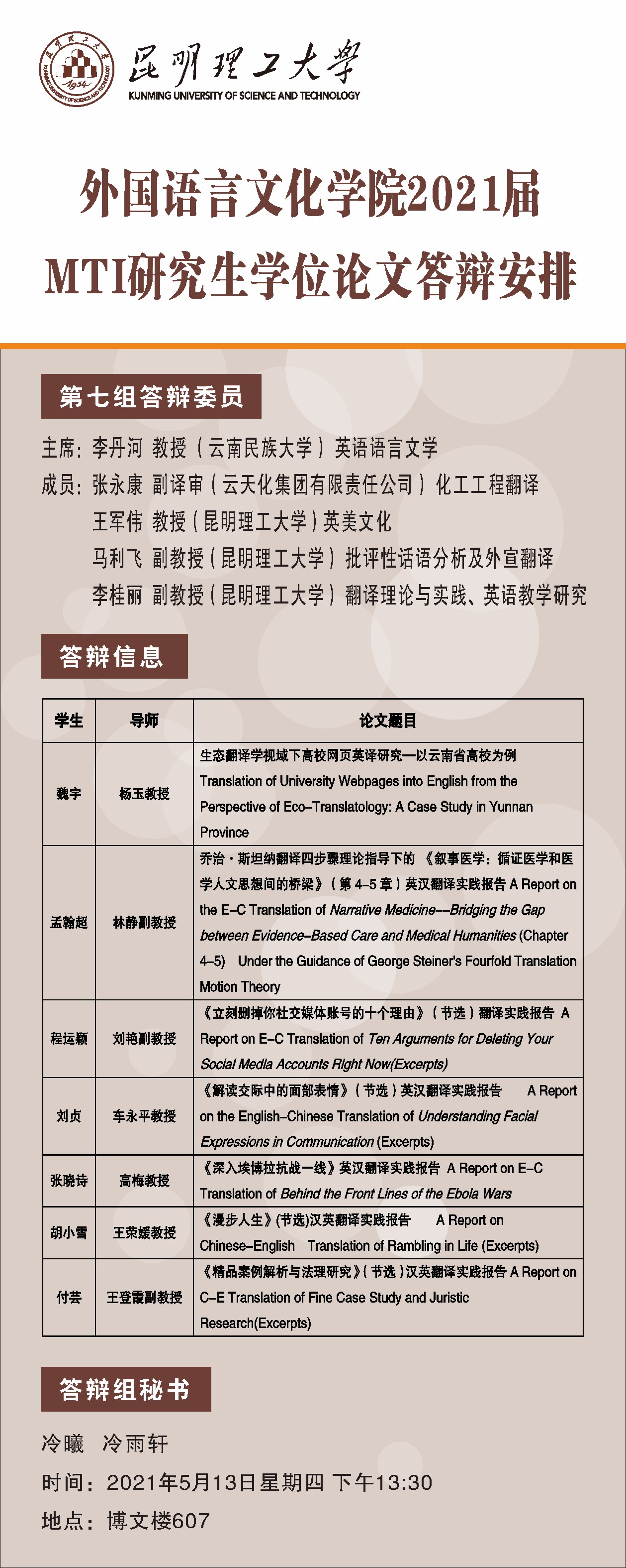 中文av 2021届MTI研究生学位论文答辩公示(第七组)