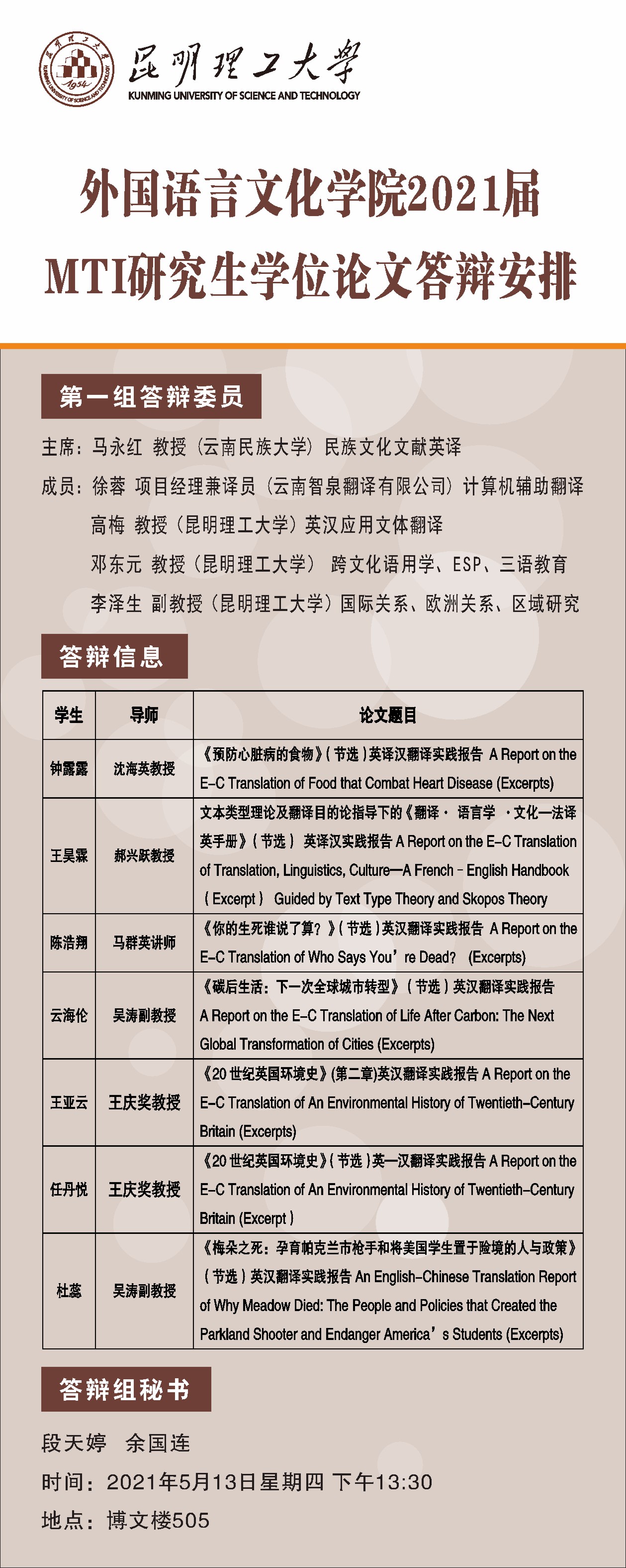 中文av 2021届MTI研究生学位论文答辩公示(第一组)