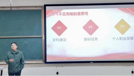 学院分管科研工作的李泽生副院长向全体教职工汇报了学院历年国家社科基金项目申报与立项情况,分析了学院教职工的学术发展状况,从学科建设和教师职业发展两个角度出发,向学院符合申报条件的教职工提出须全程参加2024年度学校和学院组织的国家社科基金申报论证要求。