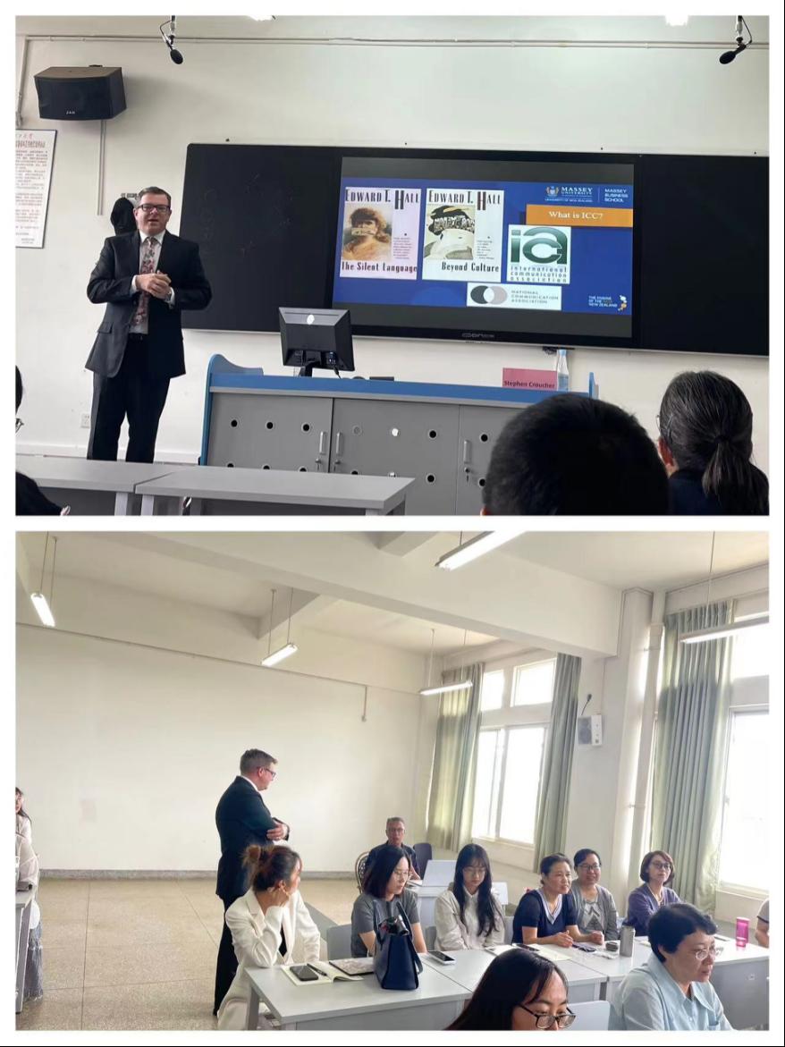 Prof. Stephen Croucher以“Intercultural Communication: Methodological Developments and Limitations”为题,详细介绍了跨文化交际(Intercultural Communication: ICC)的学科起源,ICC在南非、澳大利亚、中国的发展情况,各ICC领域的领军专家以及他们的理论和观点。Prof. Croucher在讲授ICC研究的方法论时,提出了该领域的研究方法普遍存在对等性不足的问题,并详细梳理了几种对等性的例子,给老师们提供了未来在ICC领域可以进行的研究方向和研究领域,就跨文化交际的理论和研究实践与参会教师进行了深入的探讨。