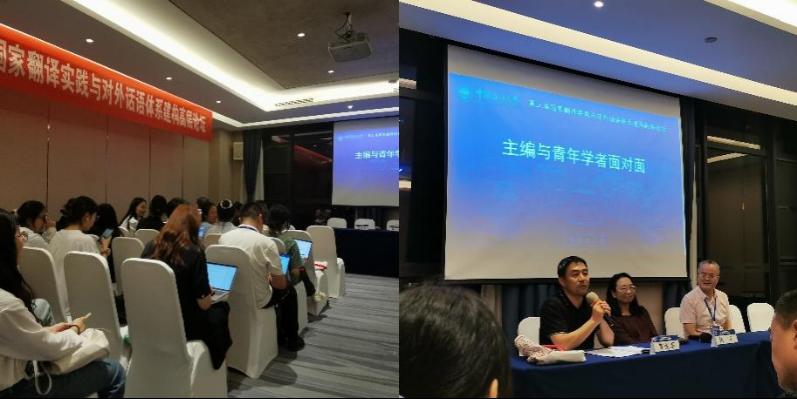 “主编与青年学者面对面”环节,《中国翻译》主编杨平、《北京第二外国语学报》主编周长银、《解放军外国语学院学报》主编陈勇、《当代外语研究》副主编杨明明、《翻译界》主编孙三军与参会代表深入交流,从期刊的专栏设置、用稿原则、审稿流程等方面为与会代表答疑解惑。