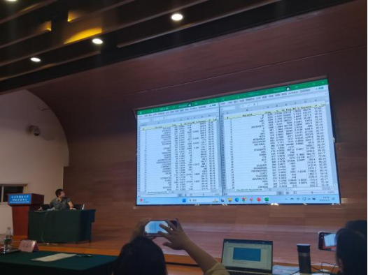 语料库创建后,进入分析语料阶段。许教授介绍了语料库文本检索分析工具AntConc的具体功能,还讲解了如何利用Syntactic Complexity Analyzer、Readability Analyzer等工具来分析语料文本的词汇难度和句法复杂度。刘博士介绍了R语言的特点以及RStudio的界面功能,详细示范了数据的可视化操作,并解读了统计分析结果。