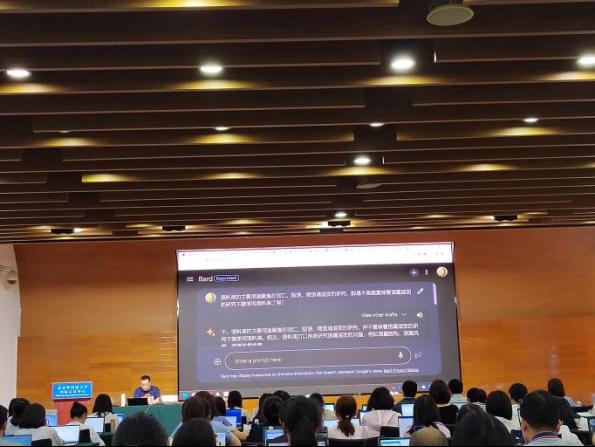 在小组实践活动中,六组教师利用ChatGPT等大语言模型开展外语教学或研究设计,并在全班进行了教学分享。在研修的最后阶段,两位专家分别结合具体教学或研究实例,讲述了语料库的辅助作用。许教授重点讲述了语料库在词汇表编写、词典编纂、教材编写、教学大纲制定、教学设计等方面的运用。刘博士分享了语料库在翻译教学和研究中的应用案例。