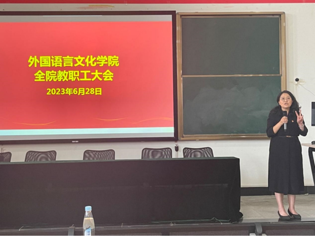 会上,王英院长再次向全院教职工逐一解读了学校下达给学院的“双一流”创建三年行动计划的22个核心指标任务,其中一流师资队伍建设3个、一流人才培养12个、一流科学研究2个、一流贡献1个、一流国际交流合作4个,以及涉及全校本科学生的大学英语四、六级通过率、考研英语成绩的提升以及研究生公共英语教学质量提升等指标任务。她希望全院职工紧紧围绕学校“双一流”创建,聚焦核心指标任务共同努力,经过三年的拼搏奋斗,实现学院在全校、全省乃至全国外语学科建设地位的稳步提升。