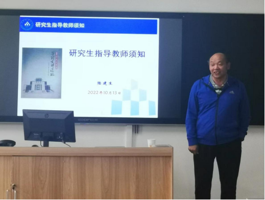 研究生督导组组长陆建生教授为学院研究生导师作题为“研究生指导教师须知”的培训讲座,讲座在博文楼403教室进行,由学院副院长李泽生主持。