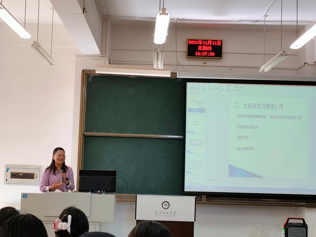 在西北楼A201举行2021年度的研究生学术交流会。本次学术交流会特别邀请到张杏玲副教授作为点评嘉宾,我院四位MTI在读硕士研究生分别和大家分享了学术论文发表及社会实践的心得体会,辅导员侯丽梅老师出席讲座。