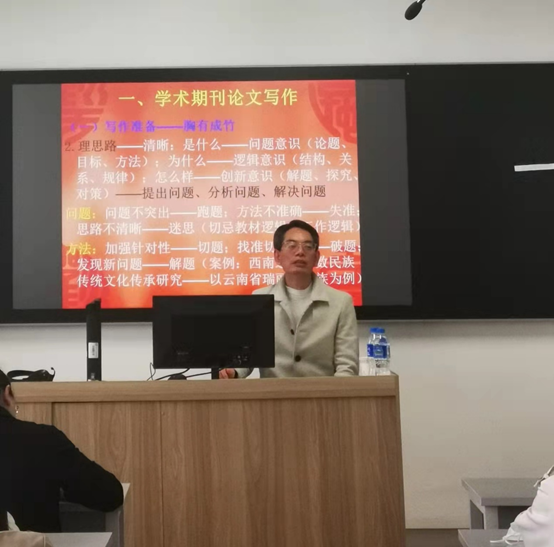 2021年11月11日,中文av 于博文楼403教室开展博文讲坛系列第41期讲座——学术期刊论文的写作与发表。本次讲座由《中文av 学报》副主编,云南省高校文科学报研究会副会长徐绍华教授主讲,由中文av 中文av 院长王英教授主持。