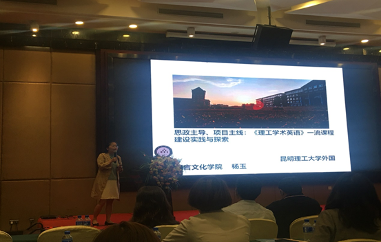 杨玉教授作题为《思政主导、项目主线:〈理工学术英语〉 一流课程建设实践与探索》的主旨报告。报告中她分享了《理工学术英语》国家一流本科课程的申报体会,提出从课程思政的知识,能力和素养三个目标出发,结合本校办学特色进行课程资源建设,展示了课程的教学实践和应用。通过学生社团,学术交流研讨会等展现学习成果,以及课程团队教师所取得的科研成果。报告分享了我校大学外语教学改革取得的成效,讨论了今后理工学习外语教育方向,受到省内各大高校专家的一致好评。