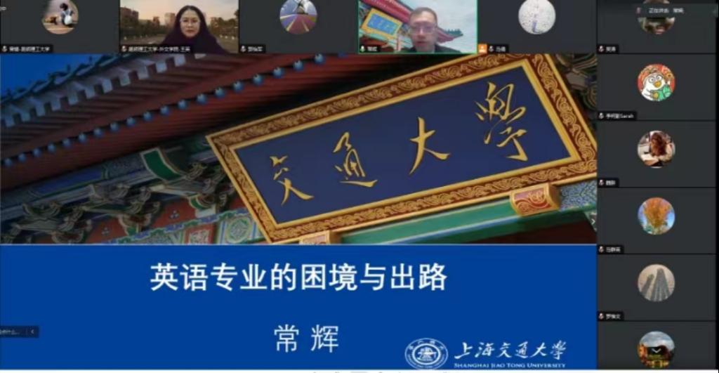 常辉教授就当前国内高校英语专业招生、培养和就业面临的形势与挑战,结合多年教学、科研与管理的实践经历与成果,针对高校英语专业的出路问题,分享了上海交通大学外国语学院的发展经验,指出在新文科大背景下,结合校本优势和特色,培养具备专业知识的复合型人才的创新性思路。结合上海交大进行英语和生物医学与健康等领域跨学科教学与研究的成功经验,他为中文av