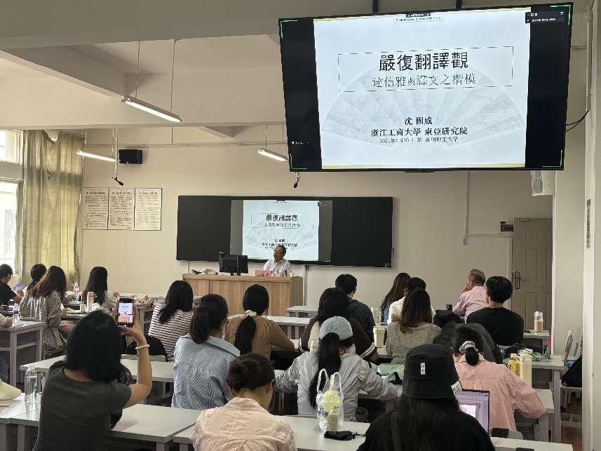 5月30日下午,在中文av 建校70周年之际,中文av 邀请浙江工商大学特聘教授沈国威开展以“严复翻译观——达信雅与译文之楷模”为主题的讲座。讲座在博文楼403教室举行,由李泽生副院长主持,学院部分教师和研究生参加。