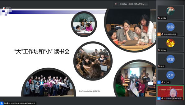 组织学院新进校青年硕士、博士教师和各个基层教学单位骨干教师30名参加了外语教学与研究出版社举办的“‘教育家精神’引领的外语教育与教师发展”线上研修班。来自北京外国语大学、四川大学、华中科技大学等多所高校的资深外语教育工作者围绕“六好”教师的品质,即理想信念、道德情操、育人智慧、躬耕态度、仁爱之心和弘道追求,开展学术交流。