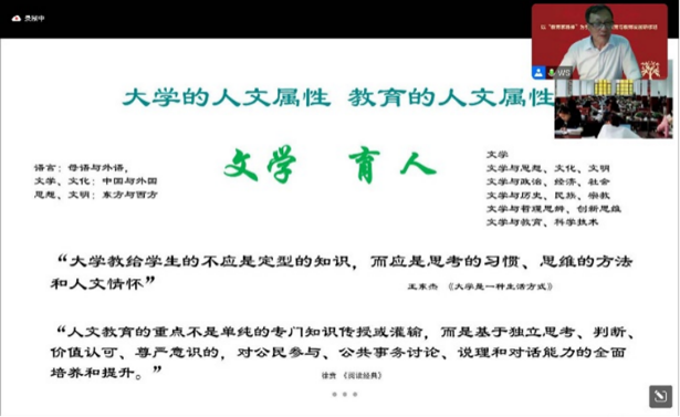 北京外国语大学文秋芳教授的《以“教育家精神”引领的教研共同体》深入剖析了教研共同体理论到实践的探索路径、四川大学石坚教授的《家国情怀与国际视野兼备的新时代外语专业人才培养》详细阐述了博雅教育实践的路径和成果,华中科技大学徐锦芬教授的《以学生为中心的和谐师生关系构建》指明了弘扬了智慧育人、乐教爱生的精神的方向,北京外国语大学侯俊霞教授的《教育援疆中的教师信念与担当作为》 深刻揭示了“大爱无疆”的援疆教育信念,湖南师大学曾艳钰教授团队的《激活团队创造力,培养高素质外语人才——以湖南师范大学为例》阐述了外语教师团队发展的先进理念等。