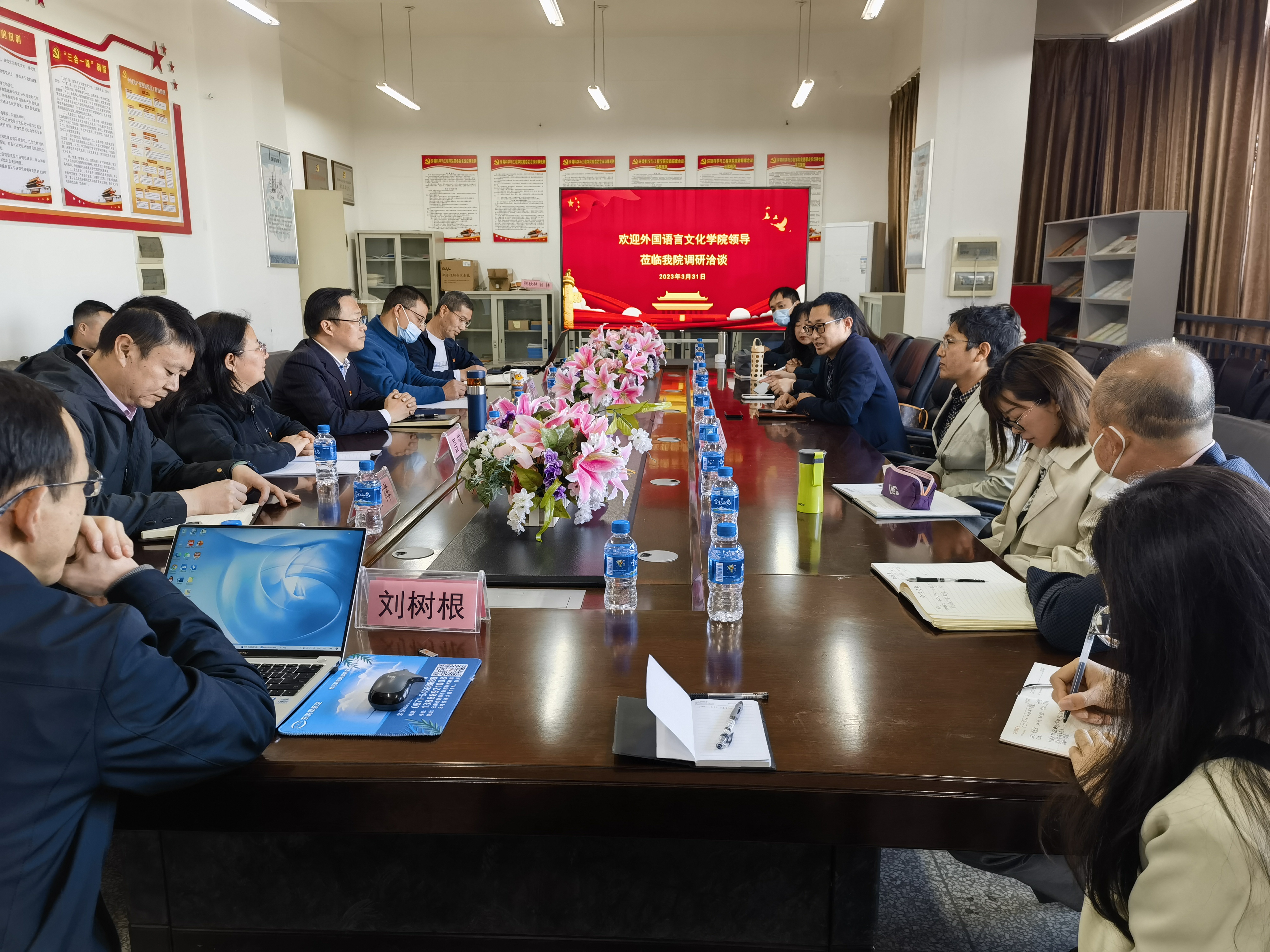 工作等进行了介绍。最后双方就本科生英语综合素质的提升、深造率的提升、大学外语教学改革与试点等工作进行了深入交流。