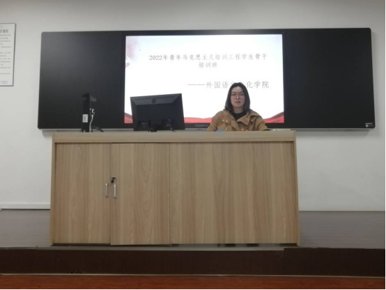 在博文403教室开展学院青马班培训讲座,集中学习习近平总书记在中国共产党第二十次全国代表大会上作的报告。本次讲座由外文院团委组织,院团委书记李雪瑜主讲,学院学生骨干130余人到场参加。