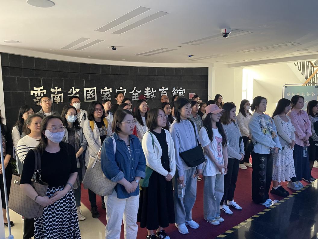 结合主题党日活动内容,于2024年4月11日下午,组织全体师生党员到云南省国家安全教育馆开展警示教育,进一步增强师生党员安全保密意识,80余名师生党员参加了活动。