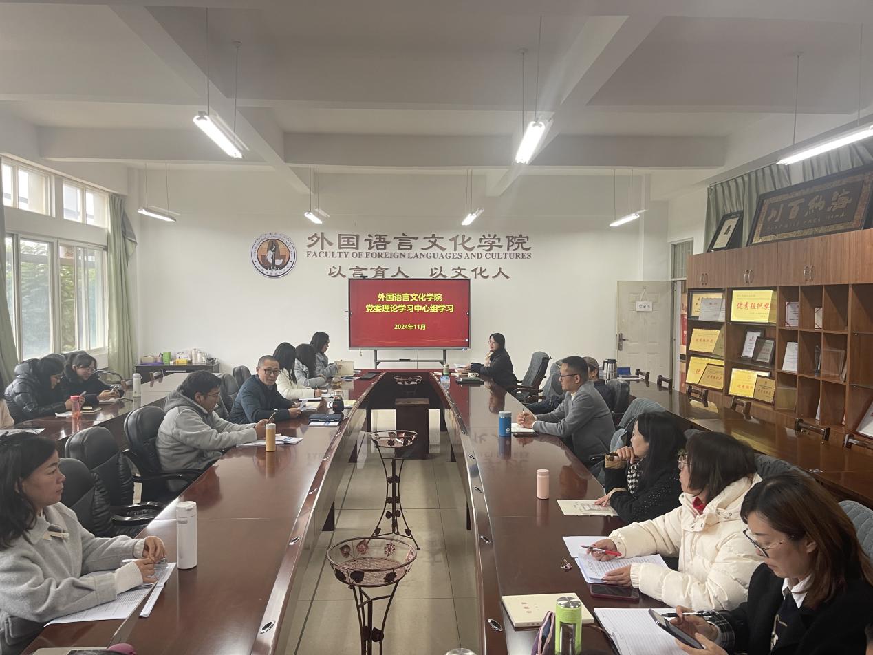 会上,刘建平领学了习近平总书记关于做好新时代党的统一战线工作的重要思想,以及习近平同志《论教育》的部分章节内容。党委副书记、纪委书记孙冠华,党委委员、副院长马倩围绕会议主题,结合学习情况和分管工作,作重点发言。会议指出,要用习近平新时代中国特色社会主义思想凝心铸魂,结合学院学科优势、外语特色、教学和科研特色等,引导师生在铸牢中华民族共同体意识、推进民族团结进步事业、培养少数民族人才、助力民族地区经济产业发展和乡村振兴等方面做出成效。