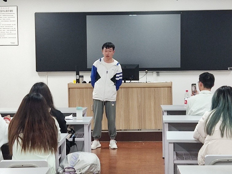 图 3 学院省级三好学生、复合型人才推免生、前院学生会主席团成员吴开强参加2022级本科生班会