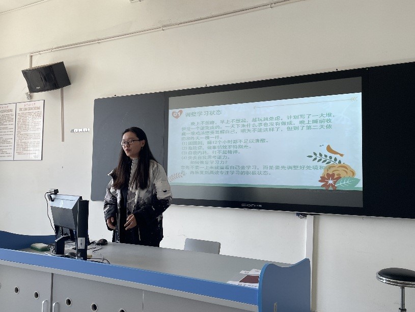 图 2 宣讲团成员王明月以“学习党的二十大精神”为题在2022级本科生班会上进行宣讲