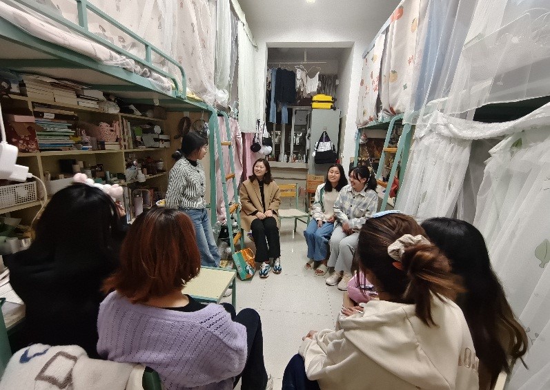 五是学院领导、班主任、辅导员老师积极走访80余间学生宿舍。通过与学生开展谈心谈话,密切关注各年级学生思想动态,提升学生心理健康素养。老师们从返校适应、专业学习内容与方法、人际交往技巧、生涯发展规划、情绪管理等入手,引导学生积极调适心态,更好、更快地适应校园生活。