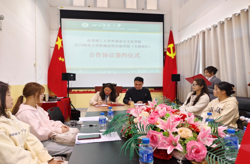 四川师范大学附属昆明实验学校(天骄校区)是由四川师范大学基础教育集团直接举办的直属学校,含小学、初中、高中教育学段。本次与我院合作建设实习基地,是该校探索实习生住校全面参与学生教育教学管理的实习合作模式,我院2024届10名学生实习期间由学校提供住宿,分别安排在七、八、九年级,参与学校教育教学管理全过程。实习启动会上,四川师范大学附属昆明实验学校教务处陈辉主任强调实习生在实习期间,要注意安全,认真学习,多和实习指导教师沟通,遵守学校制度,将理论知识用于具体的教学中,培养教师职业精神;王超督学做指导发言,强调实习期间需要培养和保持对学生的热爱和对课堂的执着之心,修炼教师的基本功。王英院长感谢川师附中对学院实习工作的大力支持,希望学校能够严格要求学生,强调学生要全身心投入实习,深入了解校情、学情和学校文化,培养优良的职业道德。四川师范大学附属昆明实验学校罗兴兵校长就合作共建实习基地的目的以及未来合作思路做总结讲话。最后,双方领导签订了实习合作协议。