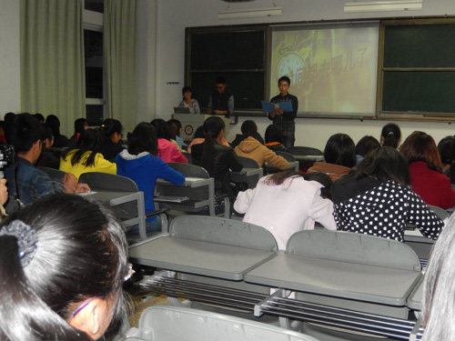 建校60周年,因此,借团日活动这个机会,为学校献上同学们最真挚的祝福。活动的第四个环节是视屏素材欣赏,由外文院记者站的同学们事先采访拍摄的视屏经过剪辑播放出来,视屏中同学们对过去半年的感悟都触动着每个人的心,之后主持人又让同学们写下对未来自己的期望并装入许愿瓶,活动结束后埋到土里,即将离校时再挖出来,那个时候再看看自己当初的愿望是否已经实现。活动的第五个环节,是编辑想对父母说的话再以短信的方式发送给父母,这一环节中,现场的气氛很安静,许多同学都是输入,删除,再输入,再删除,一直没能按下发送键,或许,对待最亲的人越是说不出爱之类的话语,行动会是最好的感谢方式吧。