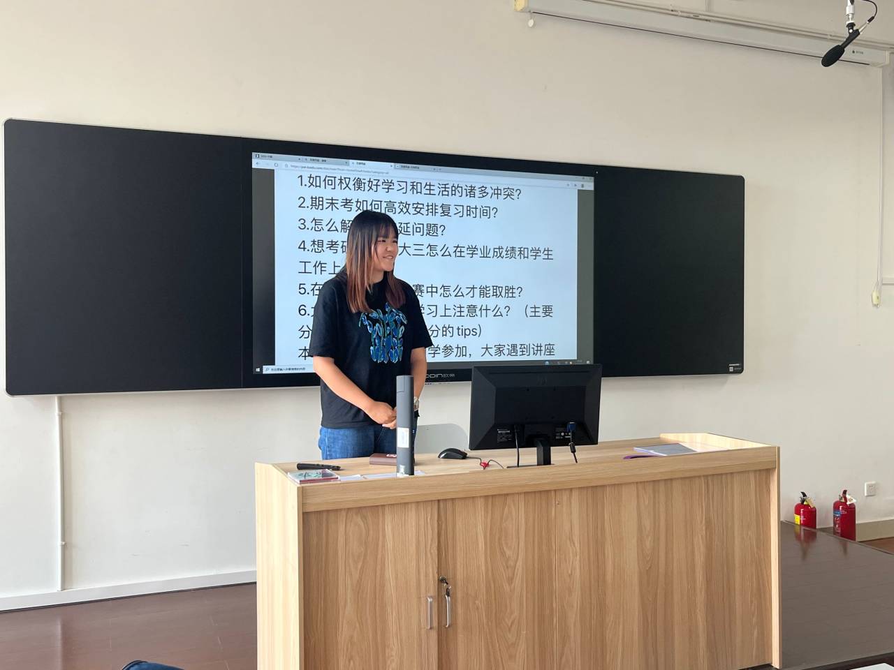 6月1日下午3点,“朋辈助学团”面向2021级本科生开展第一期活动。活动前期,2021级学生代表向助学团成员反馈了该年级学生在专业学习与校园生活中遇到的问题,助学团成员对问题进行了深入的分析与探讨,并对帮扶工作进行了具体分工。活动分为整体答疑和一对一自由问答两个部分。整体答疑环节,助学团成员刘汶汶、吴开强、何湘婷主动分享了自身的学习生活经验,针对学生们提出的问题做了细致解答,鼓励大家要珍惜美好的校园生活,积极参加各项院、校活动,主动锻炼自身的组织能力和沟通能力,充分挖掘自身的性格优势和学习潜能,找到适合自己的大学生活发展方向。自由问答环节,三位成员深入2021级学生中,为每一位同学具体的课业问题进行了答疑解惑。